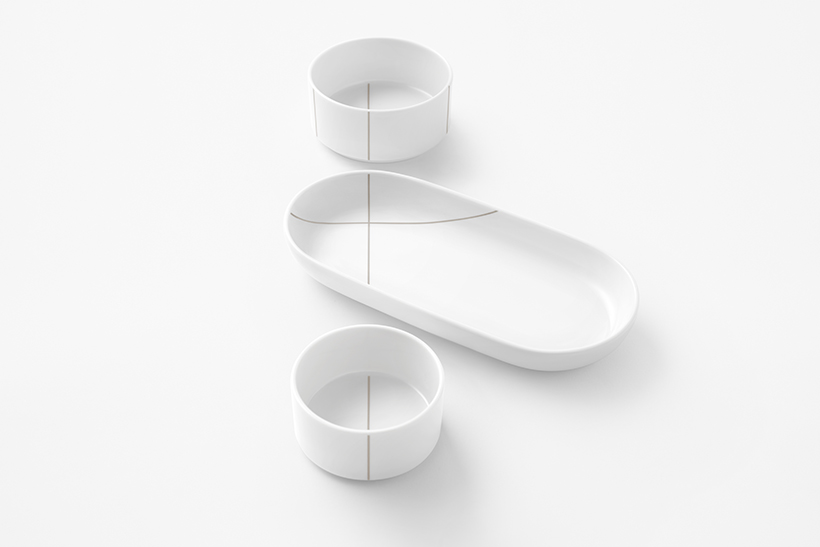 Tags emulating the paper crane’s wings are used for items such as cardigans, eye masks, slippers, and cutlery bands. Blankets, tablecloths, napkins, and other rectangular fabric items bear the detail of a folded corner, in the image of the crane’s head. Further, the pattern for folding a paper crane is employed as a design element on pouches, menu cards, and the like. The number and colours of folds are differentiated so the cabin crew may distinguish the menu cards, which may differ from flight to flight. The design conceived is one wherein similar patterns are applied to tray mats and tableware on domestic flights, with lines from the folding pattern revealed by arranging and stacking tableware for a sense of visual unity, while still depicting change according to changing menus.