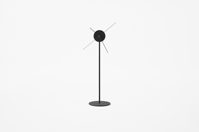 The clock in the shape of a windmill spins as a wind arises, or generates wind itself like a propeller. As the raison d’être of a clock as a product shifts from functionality to fashion, the sense of time equally starts to blur. By allowing us to see the flow of time in the flow of wind, the design comfortably expresses the passage of time.