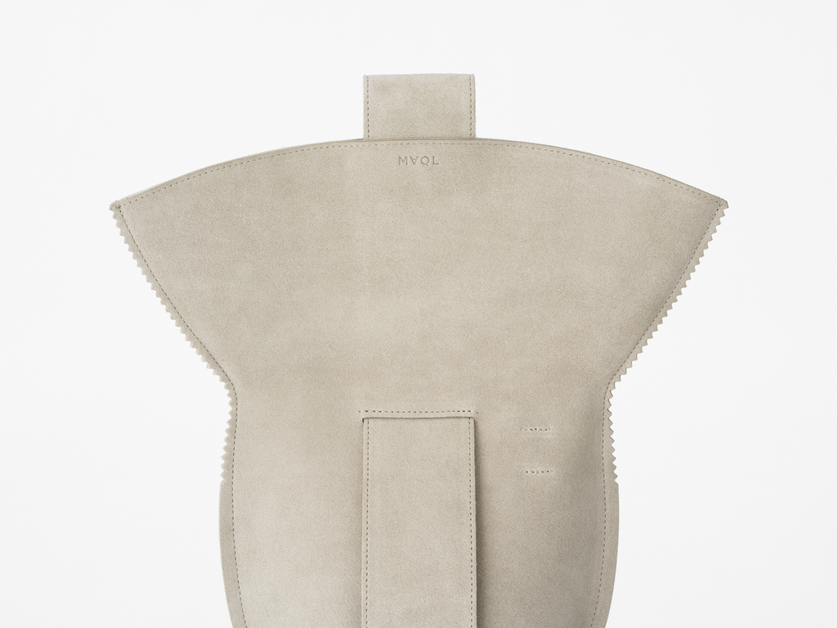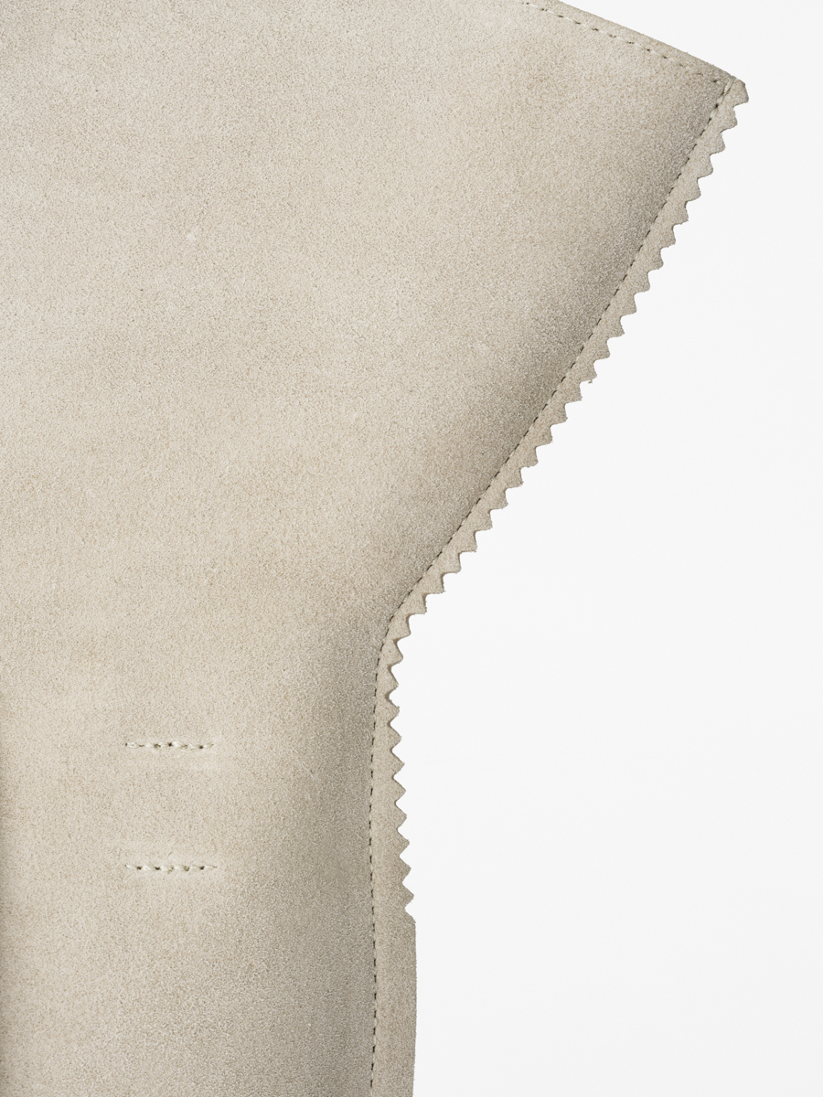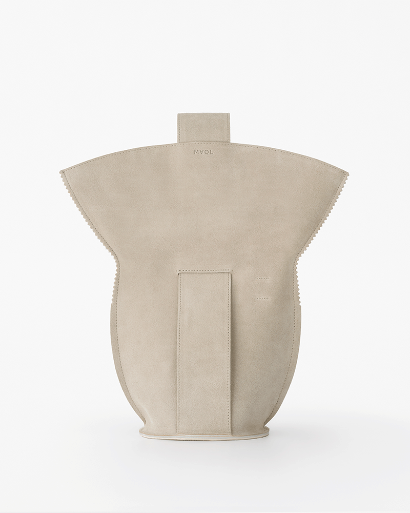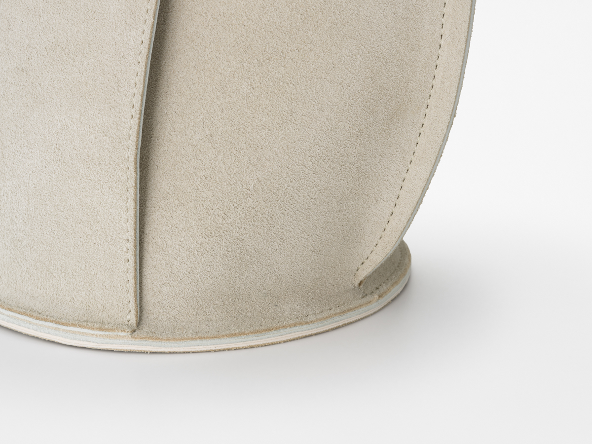裏側のスエードだけが露出したバケツのような形状を作った。