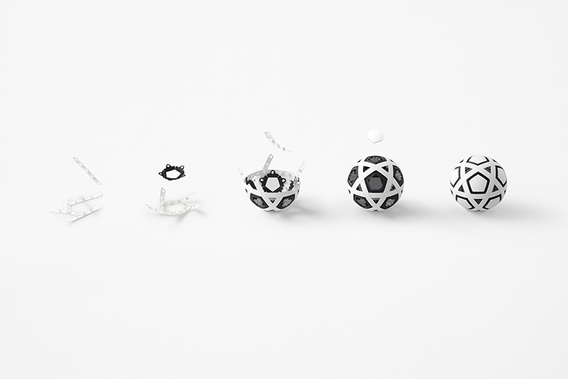 3種類のパーツを合計54個組み立てると、内部の空気圧ではなく表面素材の反発力を利用した
